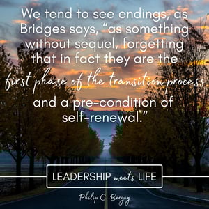We tend to see endings, as Bridges says, “as something without sequel, forgetting that in fact they are the first phase of the transition process and a pre-condition of self-renewal.”