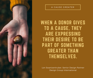 When a donor gives to a cause—whether it be through time, talent or treasure—they are expressing their desire to be part of something greater than themselves. They’re saying that this cause matters to them, it is important, and they want to be part of it. It’s a very personal and powerful thing.